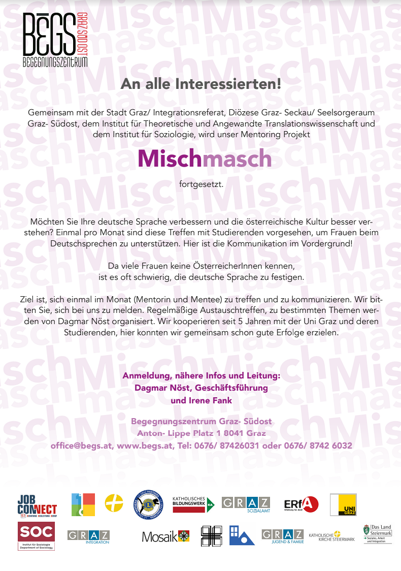 Dieses Projekt ist Dank der Kooperation mit der Universität Graz, stark gewachsen und begleitet Frauen mit Migrationshintergrund nach dem Deutschkurs.